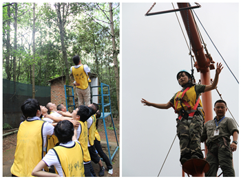 户外拓展训练内容丰富,有相依为命、信任背摔、凌空飞跃、电网、团队墙、有轨电车、黑暗之旅、真人cs等课目,既有个人项目激发个人潜能,也有团队项目考验团队合作,训练难度大、要求严。整个活动中,参训队员们密切合作、团结互助、勇于挑战,以饱满的热情和旺盛的精力积极参加训练,成功完成了训练课目?