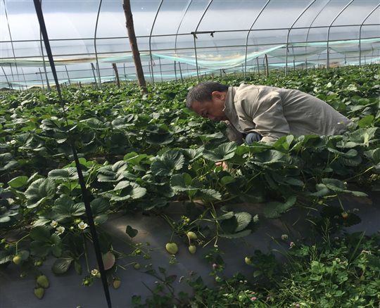 局长张钦同志在挂钩扶贫基地查看草莓长势?/span>