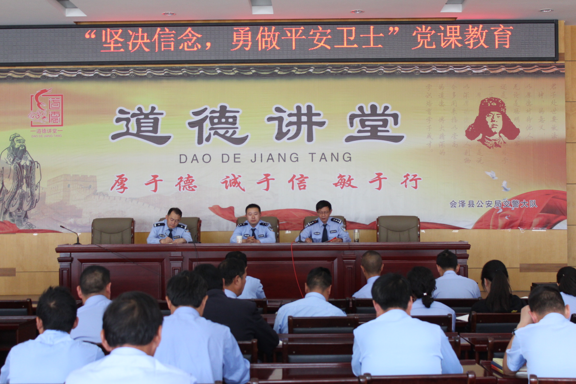 7?span lang="en-us">1?/span>下午,会泽交警大队组织内设中?span lang="en-us">30余名党员在大会议室开展系列学教活动。交警大队党总支邀请了县公安局警务督察大队副大队长张涛对党员廉洁自律方面的相关要求作了讲授。随后,交警大队副大队长文平宗带领全体党员学习了《中共共产党章程》、《中国共产党权利保障条例》,进一步增强了党员的理论基础。最后,交警大队教导员詹厚云为全体党员讲授了题为《坚定信念,勇做平安卫士》的专题党课。学教活动结束后,全体党员到全国100个爱国主义教育基地之一的会泽县水城梨园扩红基地进行参观,在缅怀革命烈士的同时重温了革命先辈们走过的艰苦、曲折、伟大的战斗历程,学习他们崇高的品质和坚强的党性,并在扩红基地红军雕像重温入党誓词?/span>