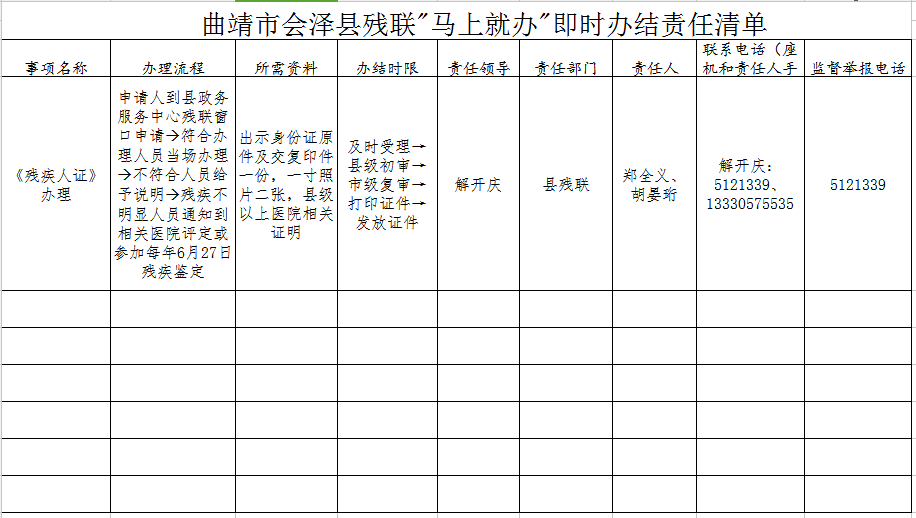 - 会泽县残疾人联合会“马上就办”责任清?/li>